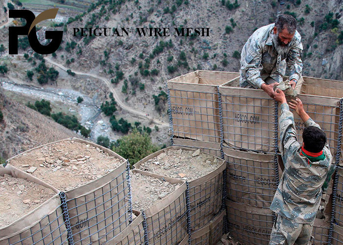 Het bastion is een nieuw type van verdedigingsbarrière die van veelvoudige stapels kan worden geconstrueerd die een barrièresysteem te vormen van gelast, heet-ondergedompeld gegalvaniseerd met een laag bedekt die staalnetwerk wordt gemaakt met een op zwaar werk berekende, niet-geweven polypropyleengeotextile stof in hoofdzakelijk groene en beige kleuren wordt gevoerd die voor perimeterbescherming, grenscontrole en tijdelijke aanpassingsschuilplaatsen kunnen worden gebruikt.